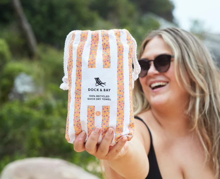 We are passionate about #doingourbit for the world we live in and reducing our environmental footprint wherever we can. It has always been a goal of ours to create products from something that would have otherwise been filling up landfills. It took a little time to get the new material perfect and it wasn’t an overnight process but now we’re happy the material is up to scratch and the same quality quick-dry fabric that you know and love.