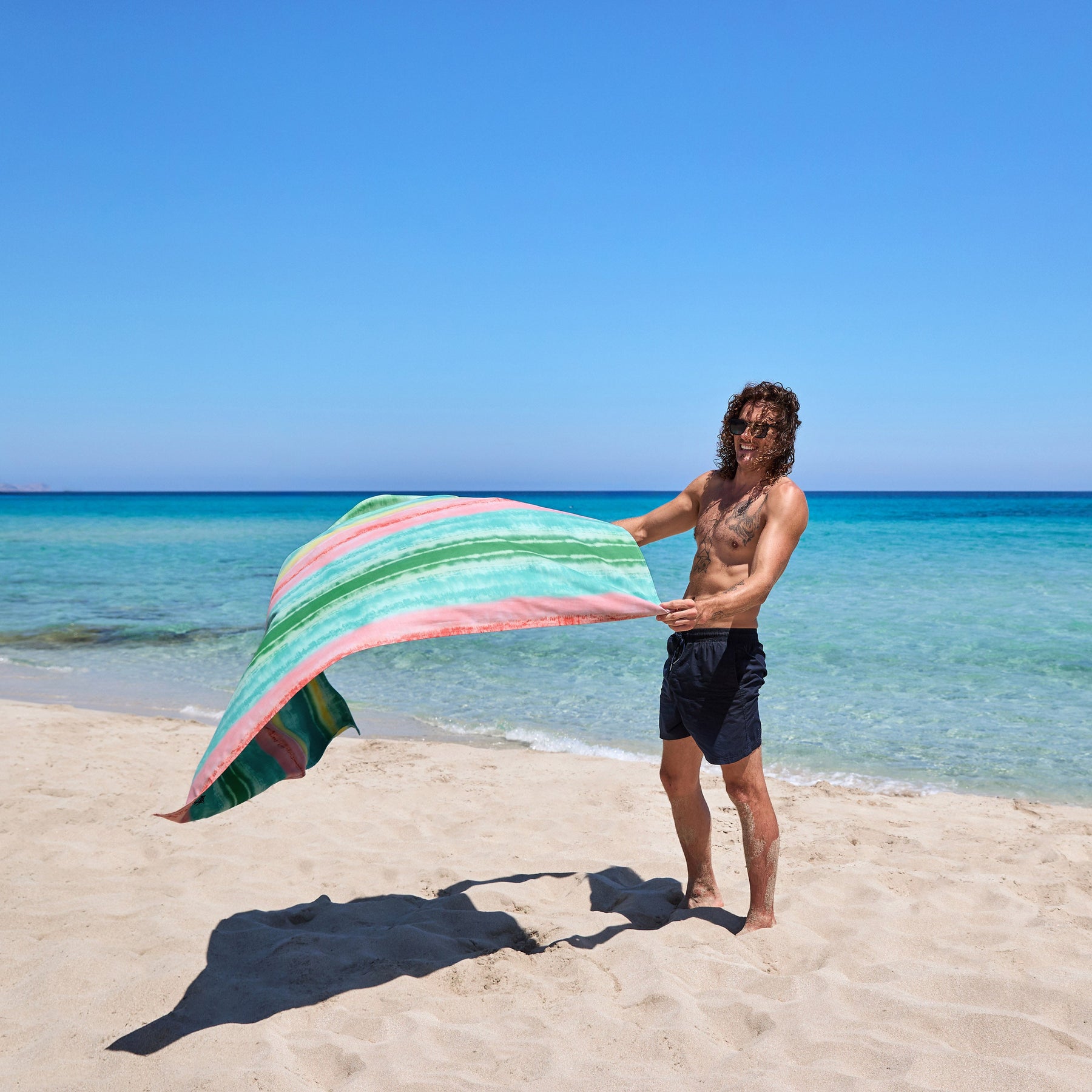 Made from our premium 100% recycled DryQ™ fabric, it dries much faster than standard cotton towels and won’t hold onto damp smells. Sand shakes straight off, it packs down small into its iconic pouch, and it’s ready to go again in no time.
